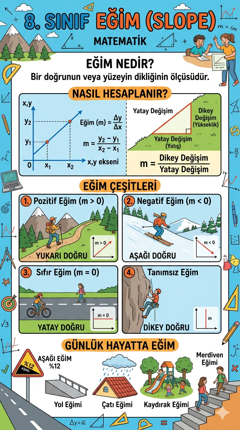 📐 8. Sınıf Matematik: Eğim (Slope) Konusunu Tek Görselde Keşfedin!